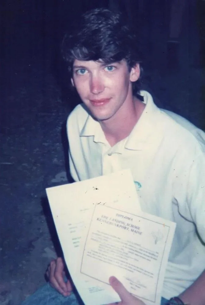 David Bohnhoff with his diploma when he graduated from The Landing School of Boatbuilding and Design in Kennebunkport Maine.